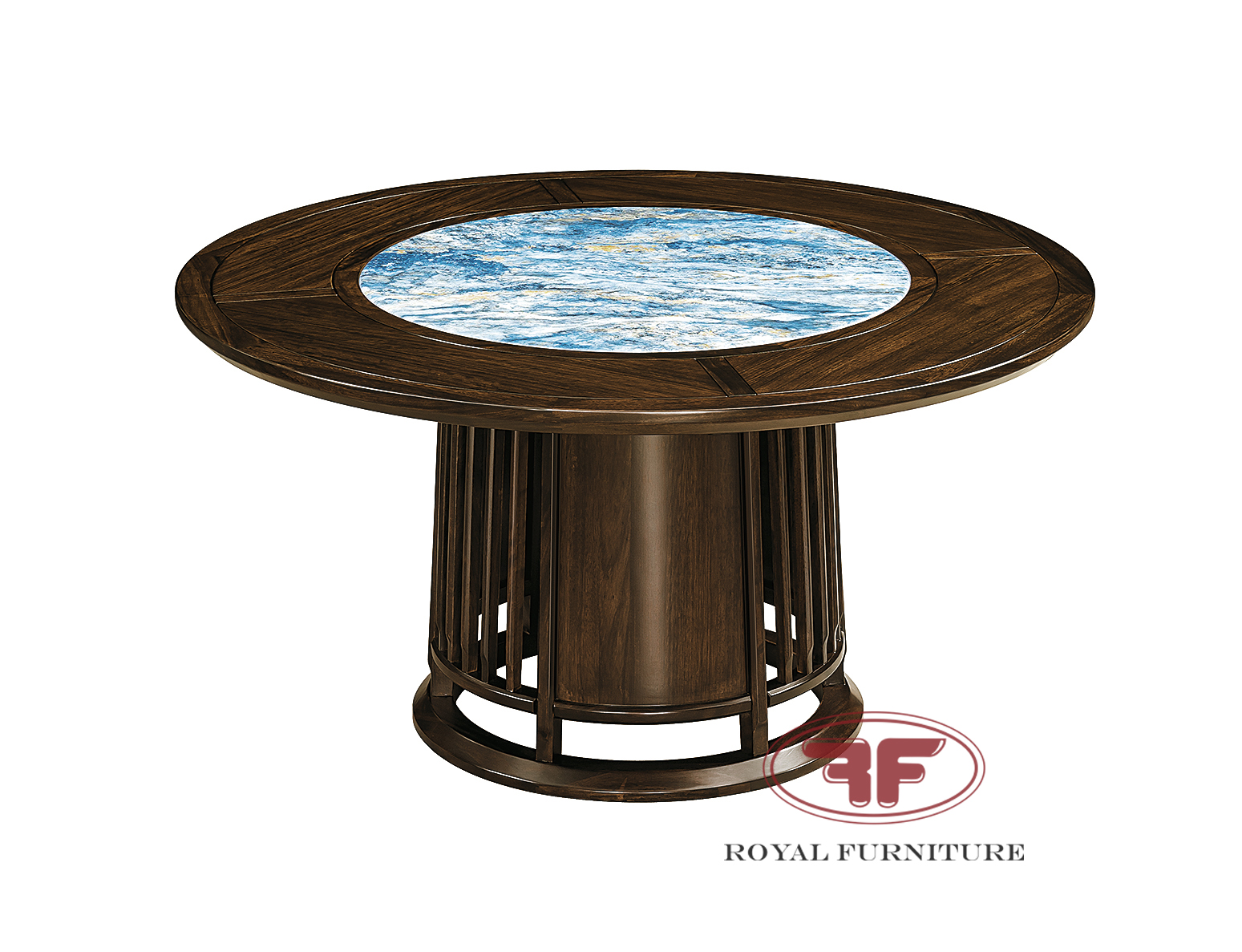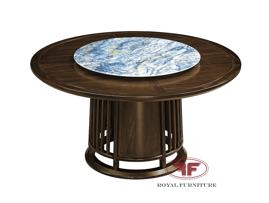 Mẫu bàn ăn tròn mặt đá Indochine Gỗ óc chó mâm xoay 2368