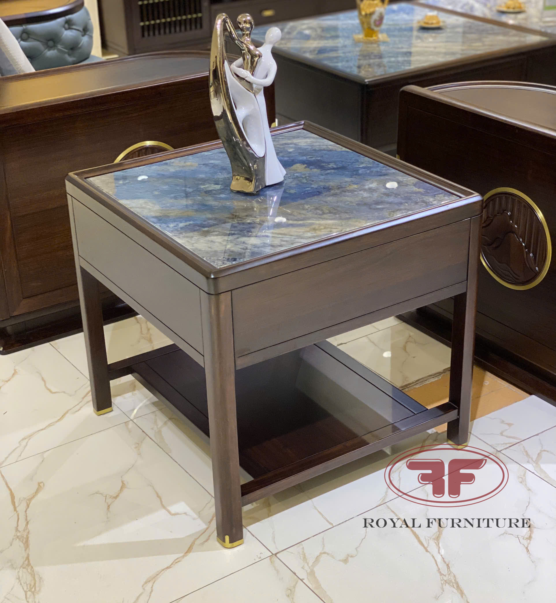 Mẫu bàn trà Indochine gỗ óc chó mặt đá có ngăn kéo nhập khẩu HT2312 là mẫu nội thất mới được ra mắt tại Nội Thất Tân Hoàng Gia, thiết kế có hộc ngăn kéo tiện ích để chứa đồ kín và có bệ gỗ dưới chân thoáng cũng có thể để được đồ . Thiết kế mặt đá làm tăng sự sang trọng cho tổng thể phòng khách .