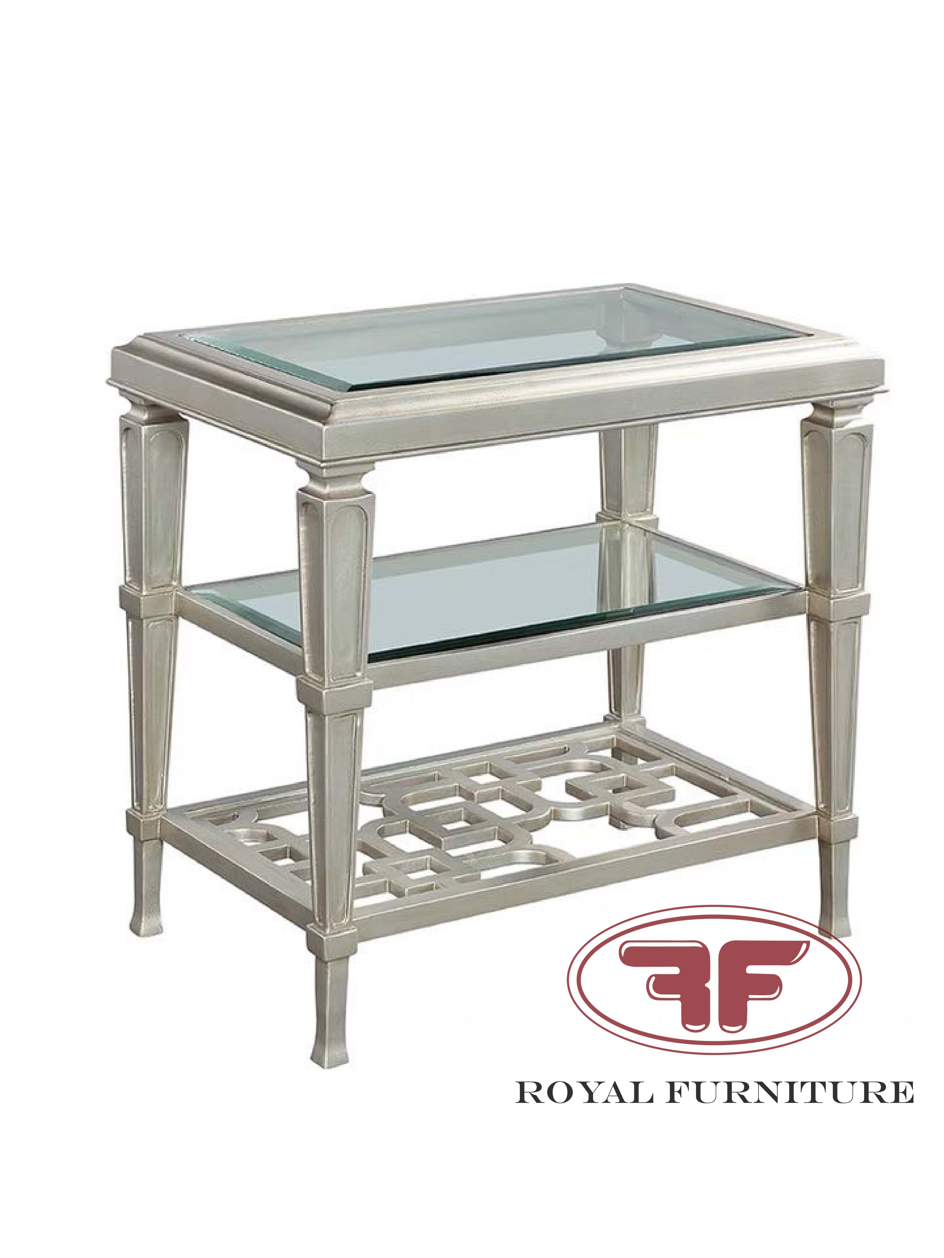 Bàn trà góc mặt kính hiện địa thiết kế 3 tầng độc đáo 8803