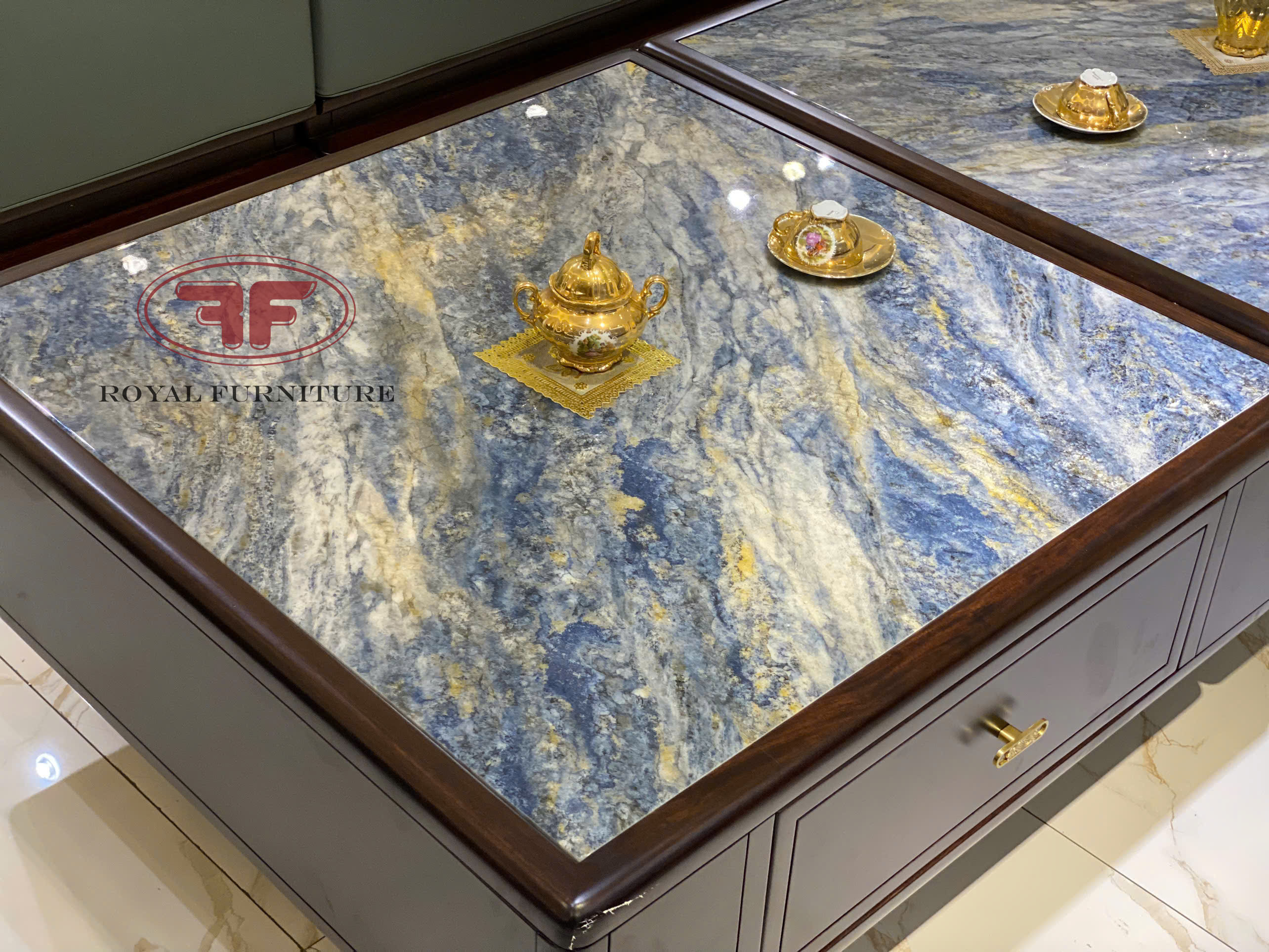 Điểm đặc biệt của mẫu bàn trà Indochine gỗ óc chó 1m8 mặt đá 2310 này là có thể tách rời và di chuyển riêng lẻ theo ý muốn của gia chủ. Nếu bạn thích thú với các kết hợp này có thể tham khảo thêm mẫu bàn kết hợp 2 bàn vuông: 1 mặt đá, 1 mặt gỗ cùng phong cách nội thất indochine mà Tân Hoàng Gia đã giới thiệu tại đây.