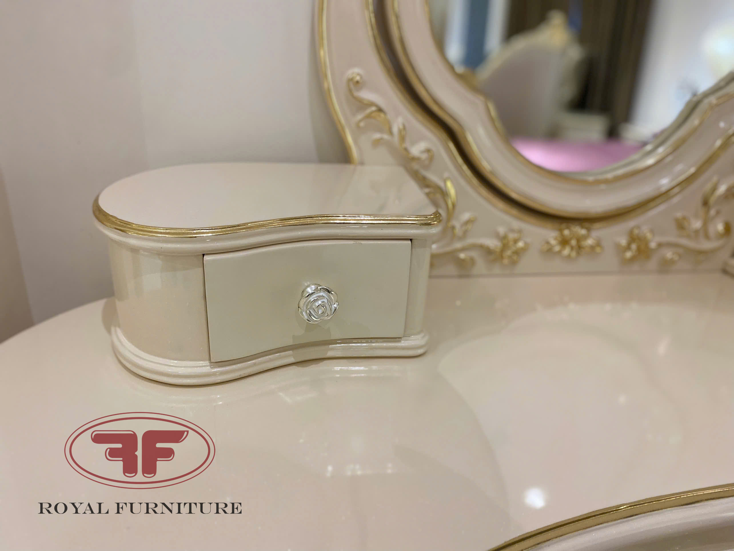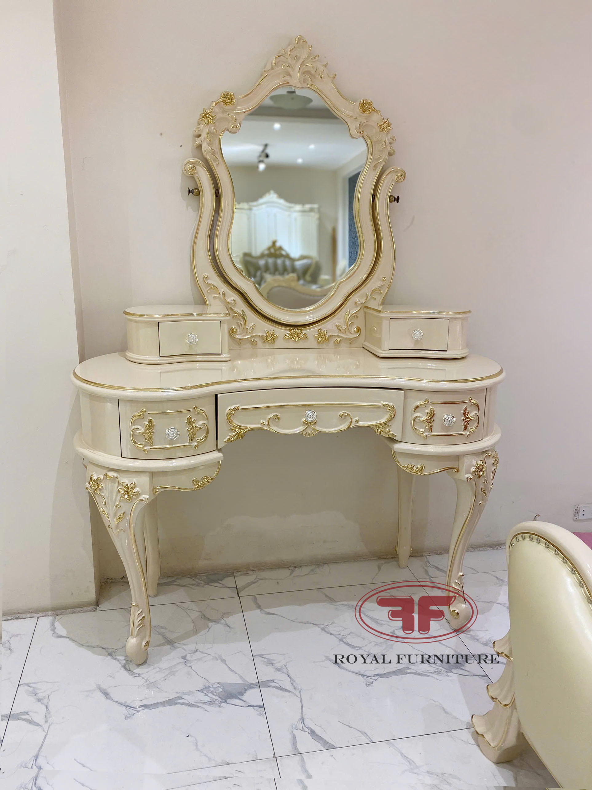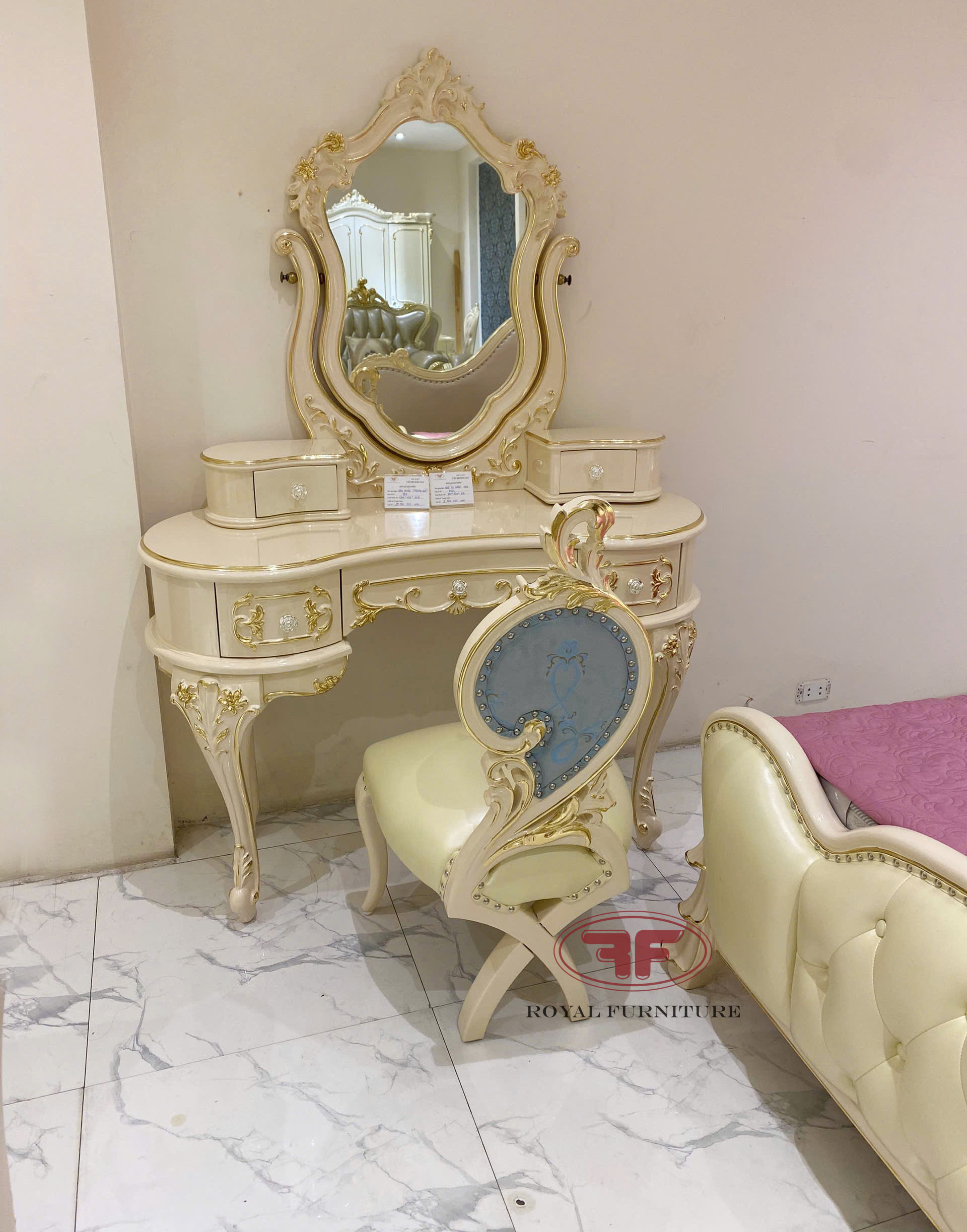 Ảnh chụp thực tế tại showroom mẫu bàn trang điểm cô dâu dát vàng tân cổ điển 805