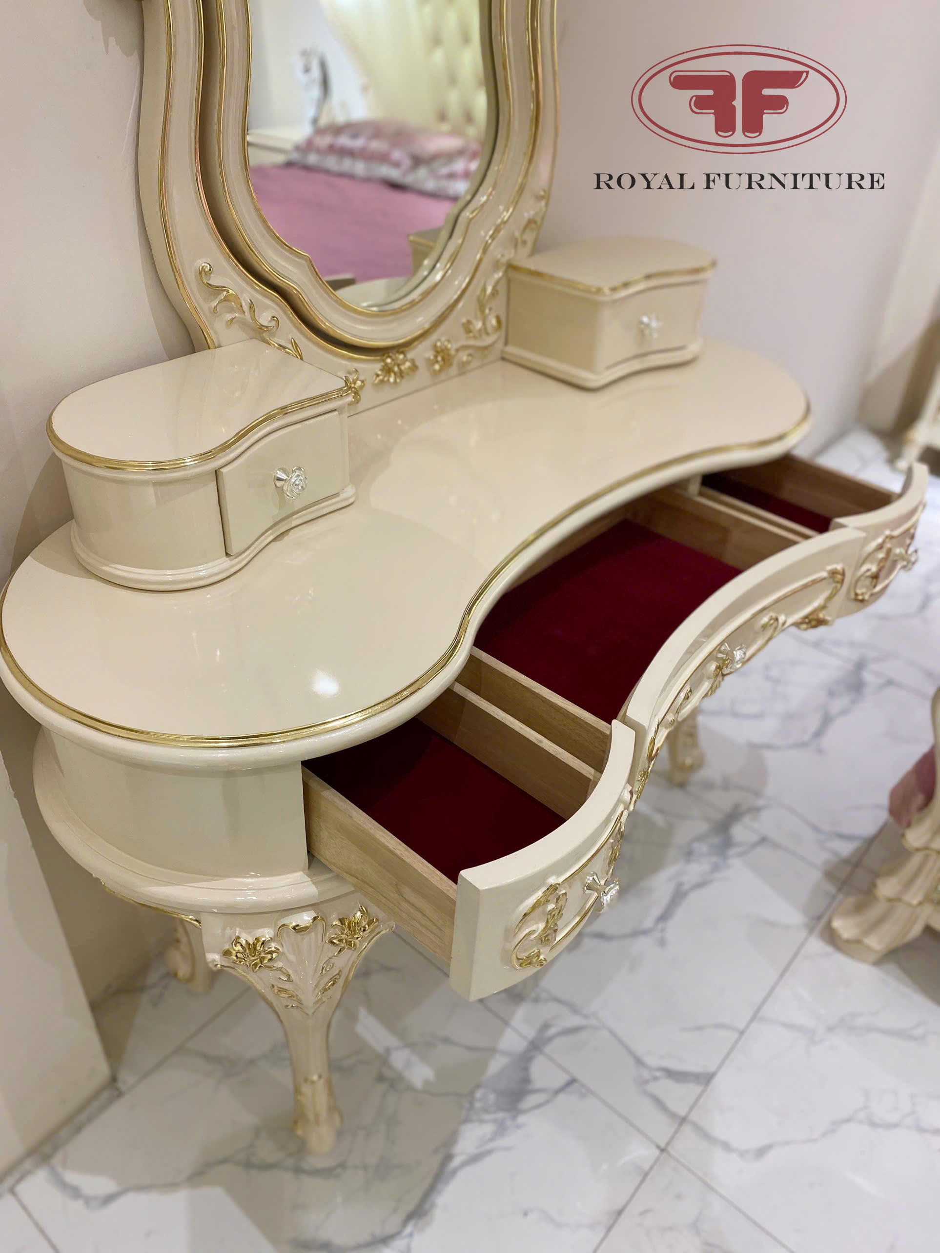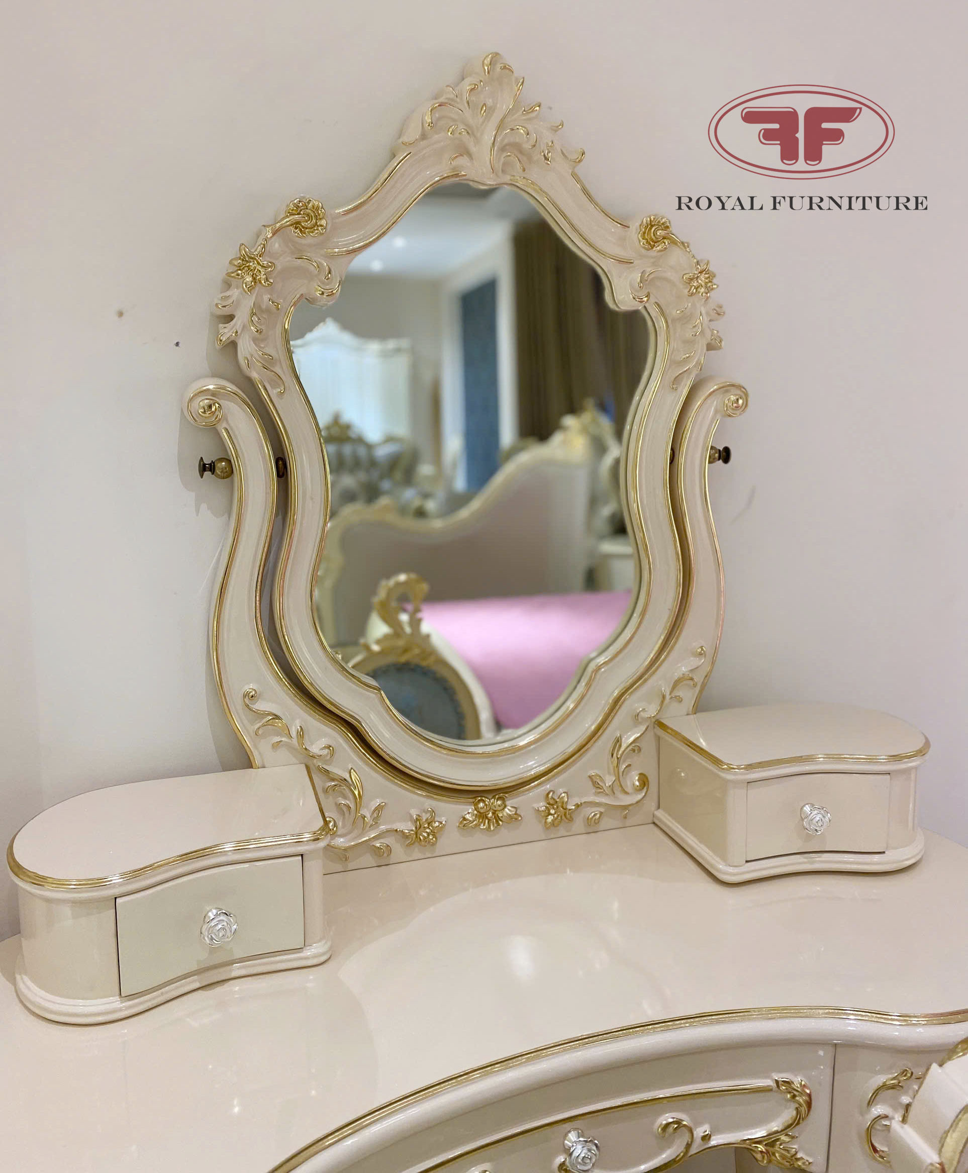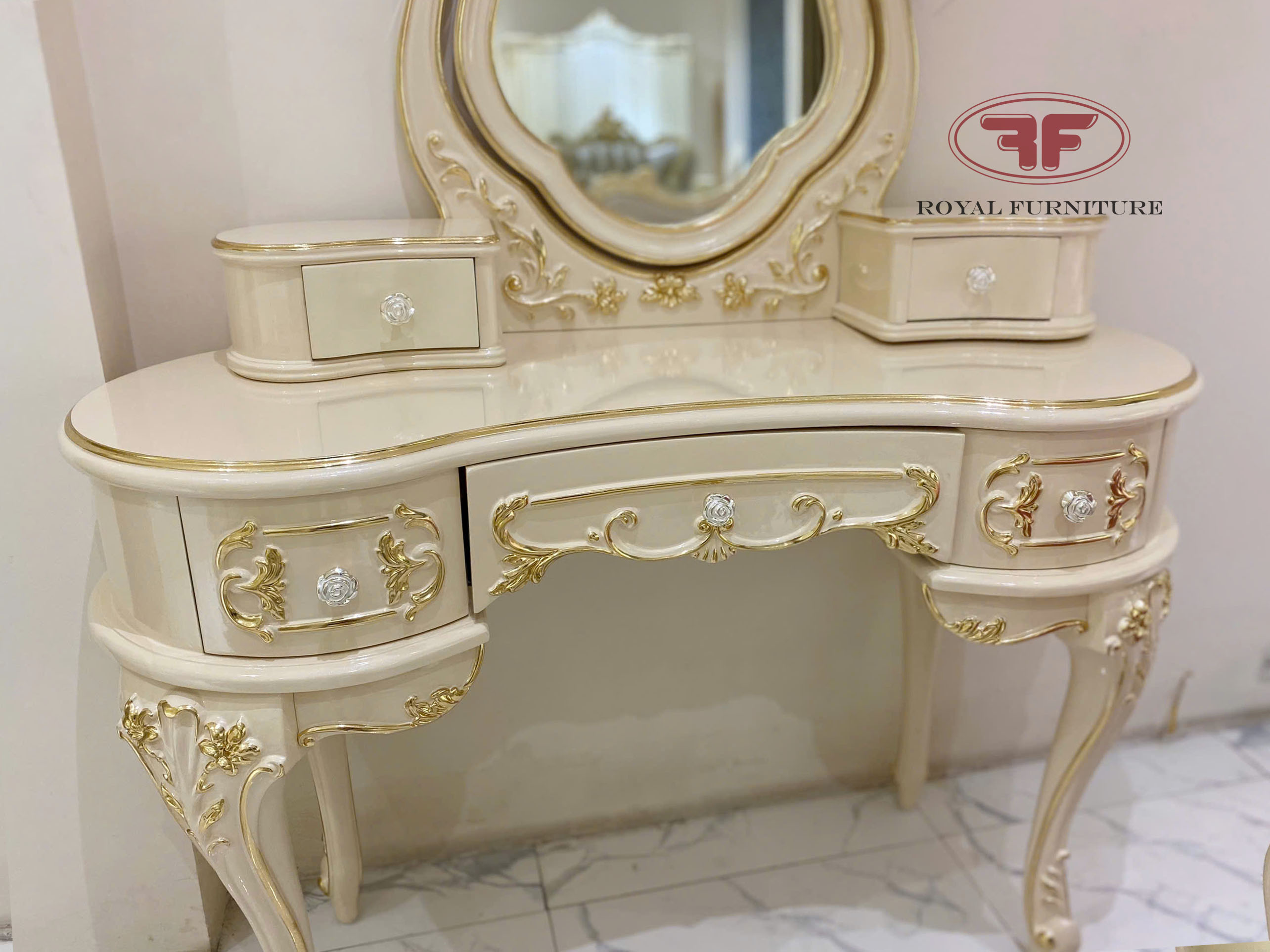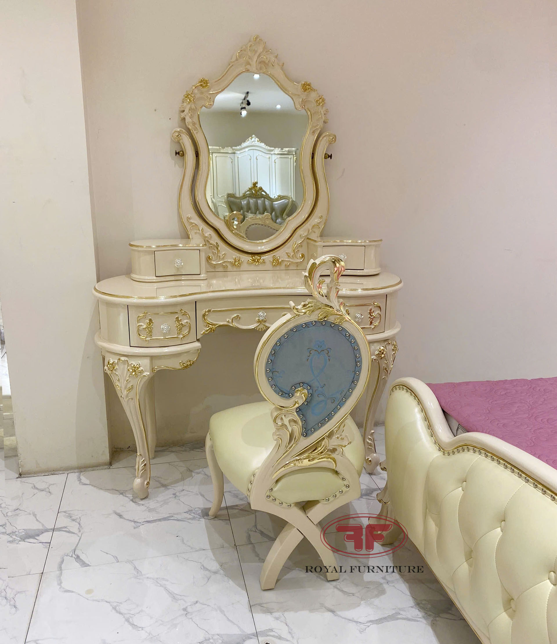 Ảnh chụp thực tế tại showroom mẫu bàn trang điểm cô dâu dát vàng tân cổ điển 805