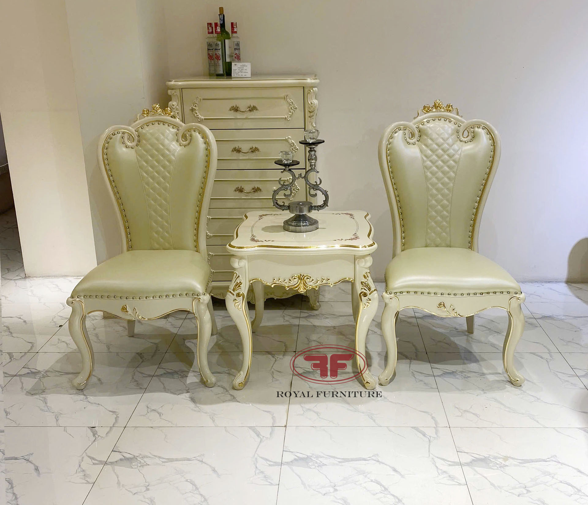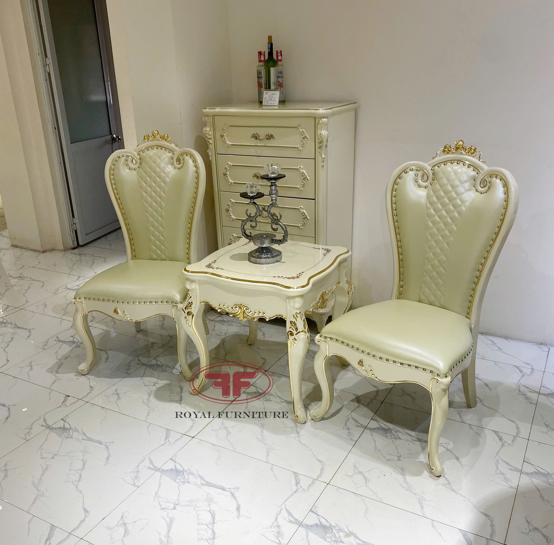 Bộ bàn trà 2 ghế thư giãn tân cổ điển dát vàng siêu cấp mới
