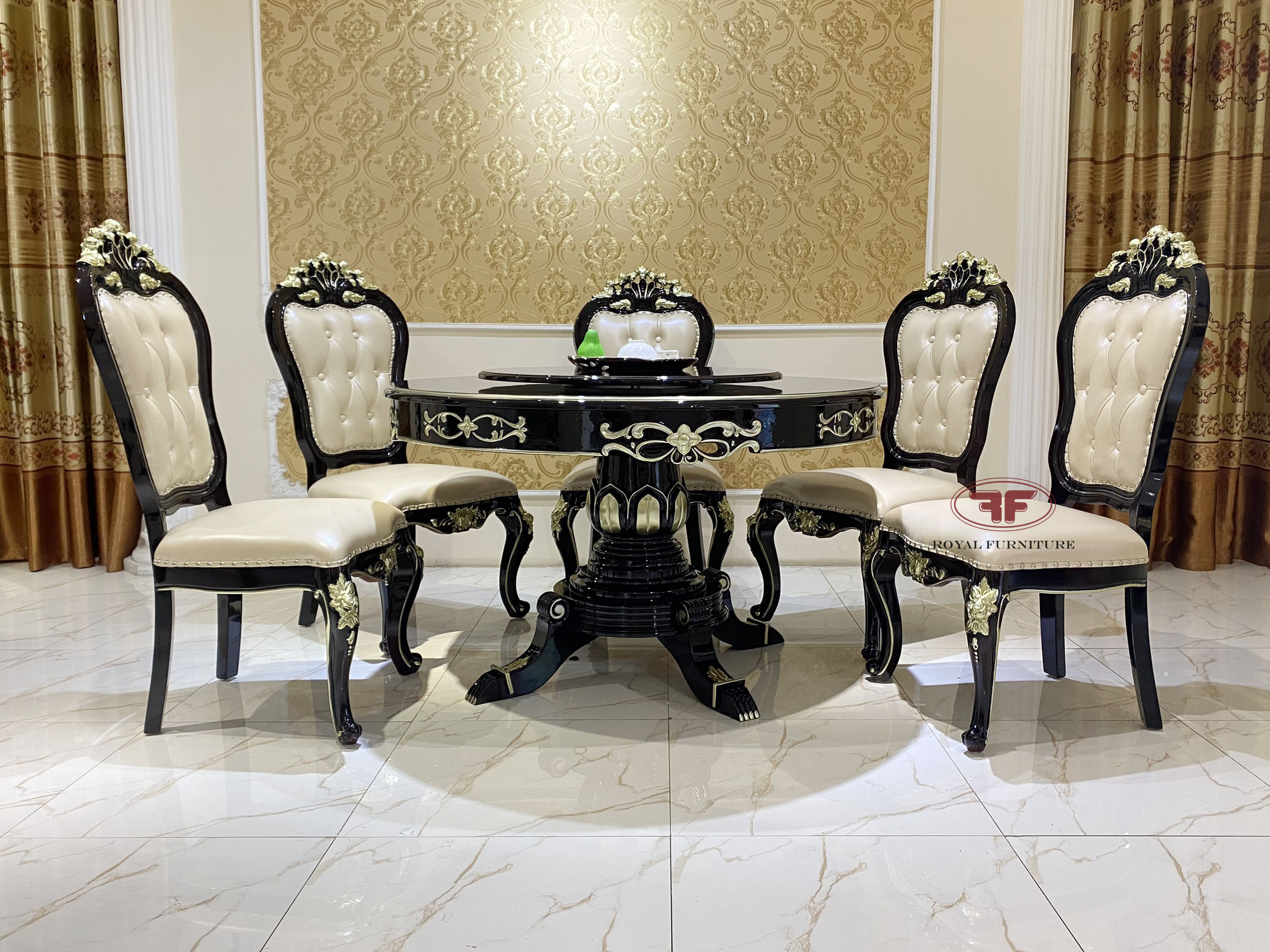Trang trí nội thất phòng ăn cho gia chủ trở lên đẳng cấp và sang trọng , thì bàn ăn tân cổ điển sẽ là 1 phần tất yếu không thể thiếu cho mỗi gia đình . Lựa chọn bộ bàn ăn tròn mặt gỗ mâm xoay kết hợp 6 ghế G952 là lựa chọn hoàn hảo để trang trí phòng ăn sang trọng , tiện ích và phù hợp cho 1 gia đình cơ bản 6 thành viên.