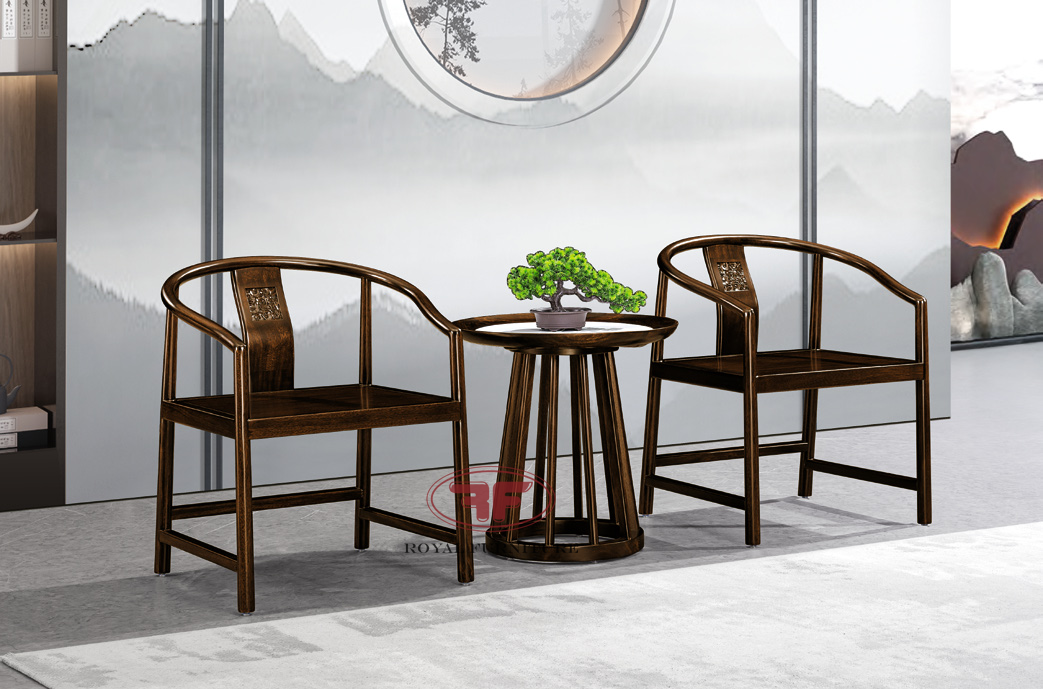 Bộ bàn trà 2 ghế Indochine Gỗ óc chó có tay vịn sang trọng 2396 gồm hai ghế đơn và một bàn trà nhỏ, được đặt trong một không gian nội thất indochine đậm chất Á Đông. Ghế có thiết kế tròn độc đáo với phần tựa lưng cao và uốn cong, tay vịn thanh thoát, tạo cảm giác thoải mái và thư giãn. Khung ghế được làm từ gỗ tự nhiên, tạo nên vẻ đẹp ấm áp và gần gũi với thiên nhiên. Phần lưng ghế thường được chạm khắc các họa tiết tinh xảo.