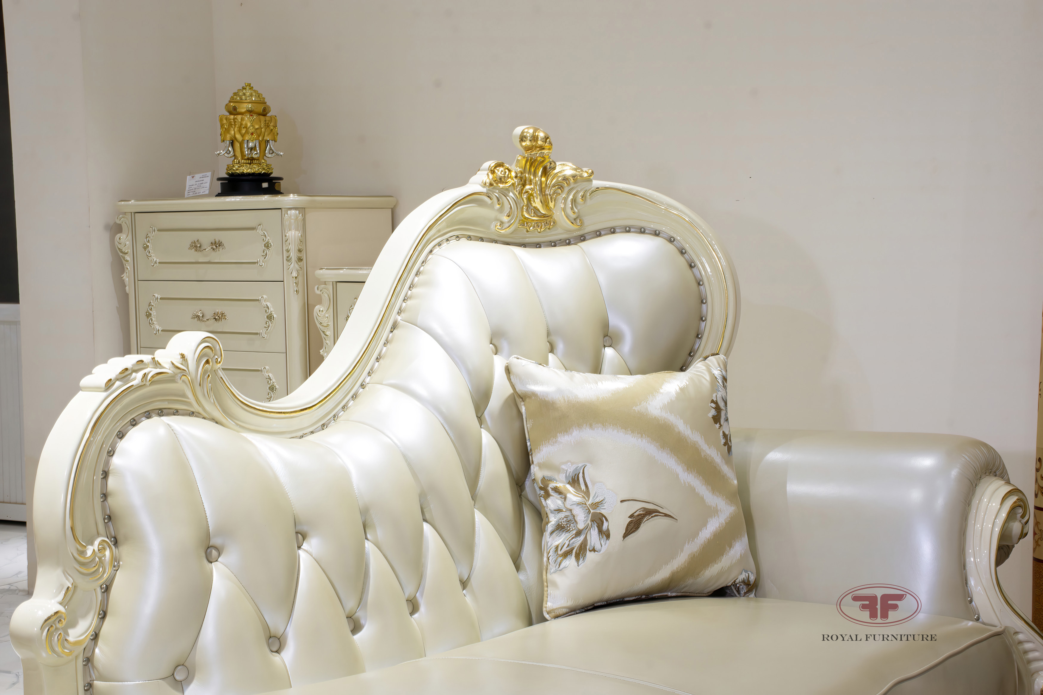 Bộ sofa phòng khách tân cổ điển dát vàng kết hợp ghế quý phi 9902B