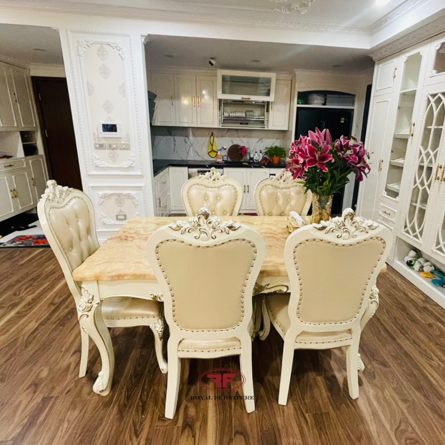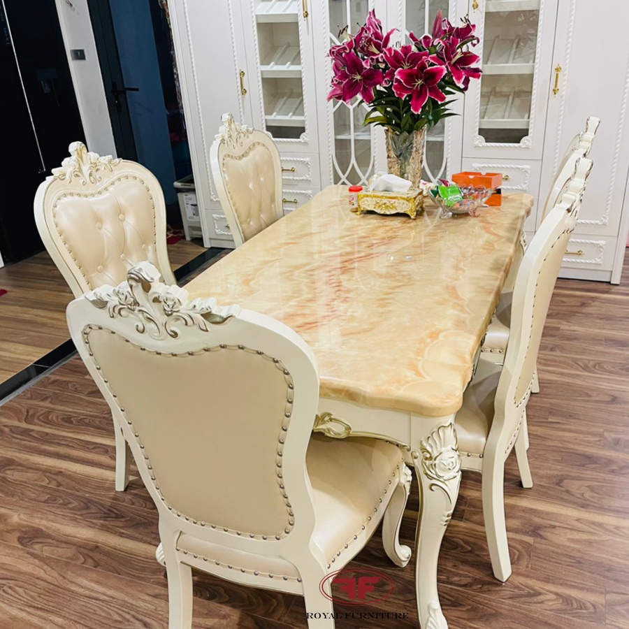 – Bộ bàn ăn mặt đá 1m6 + 6 ghế: