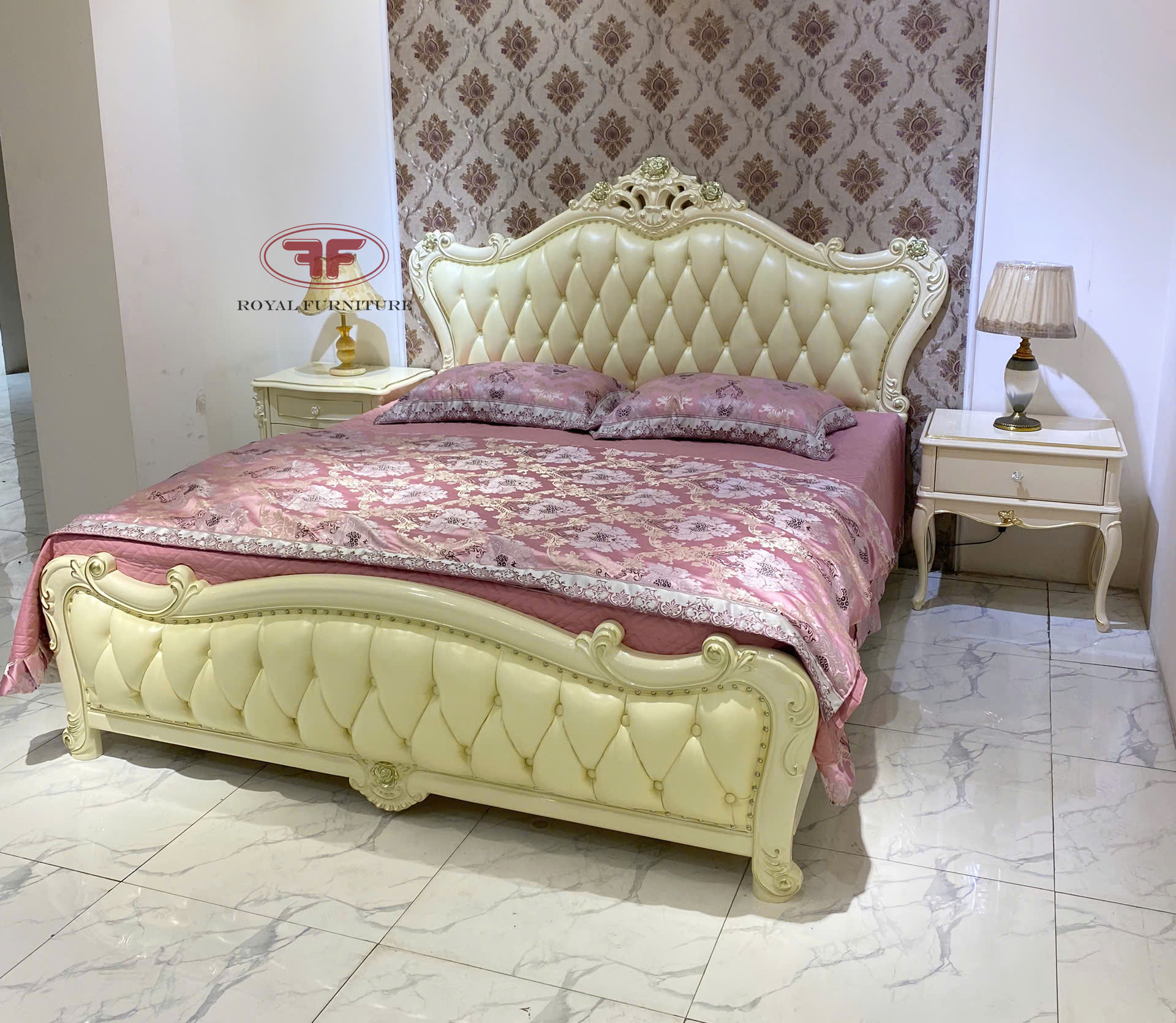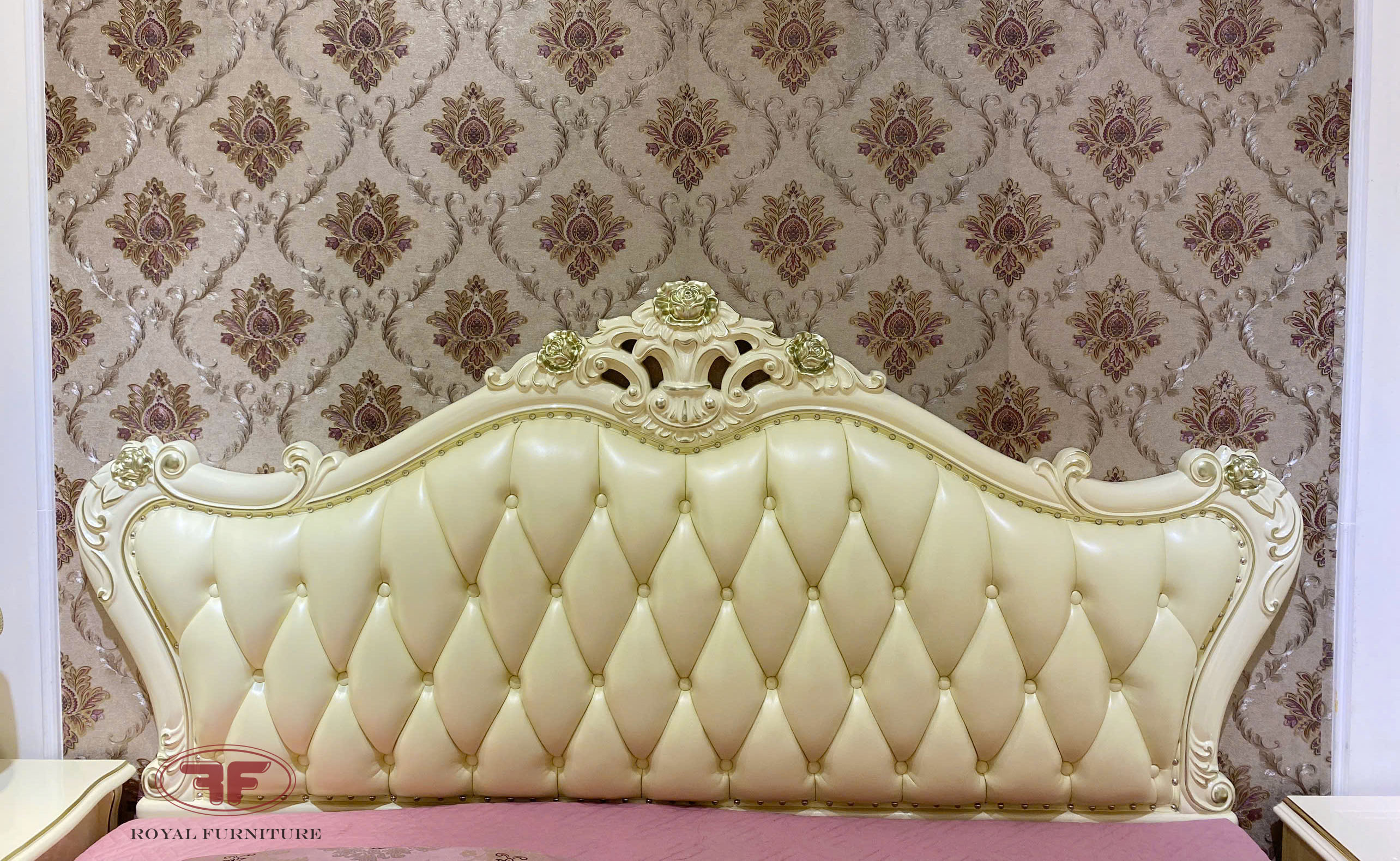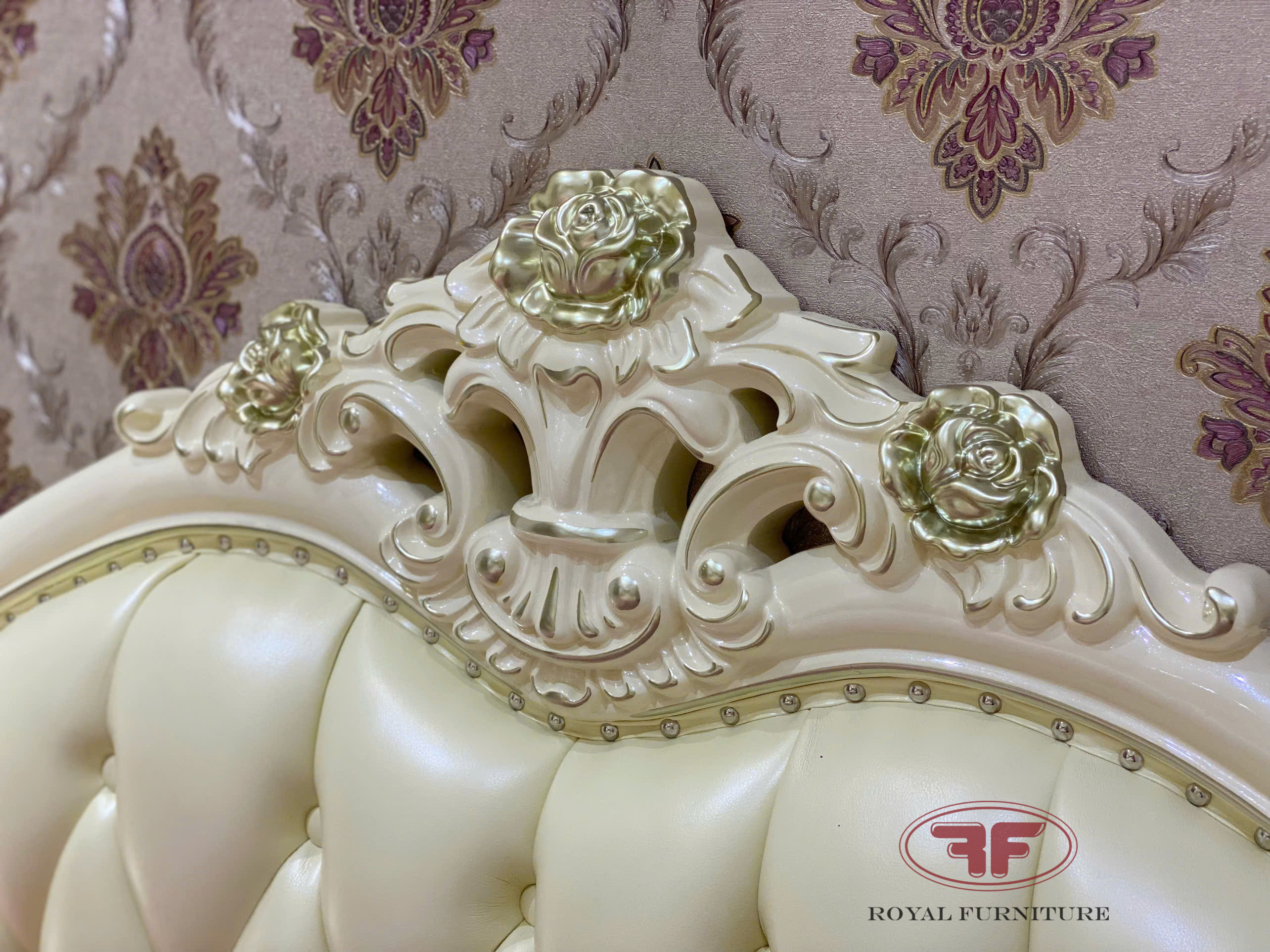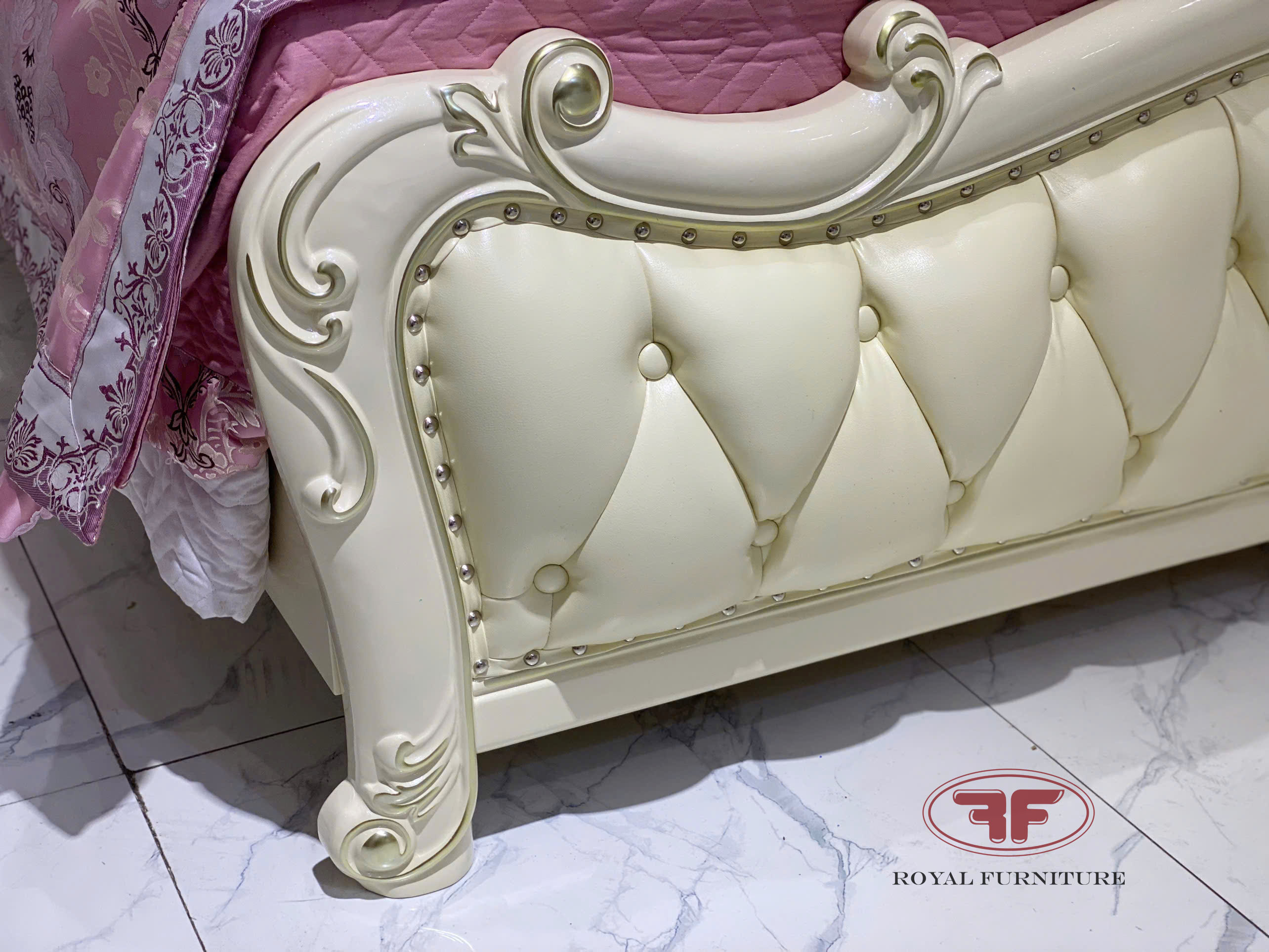 Chi tiết sản phẩm Giường ngủ 1m8 đẹp tân cổ điển gỗ tự nhiên SAINA WHITE 882B: