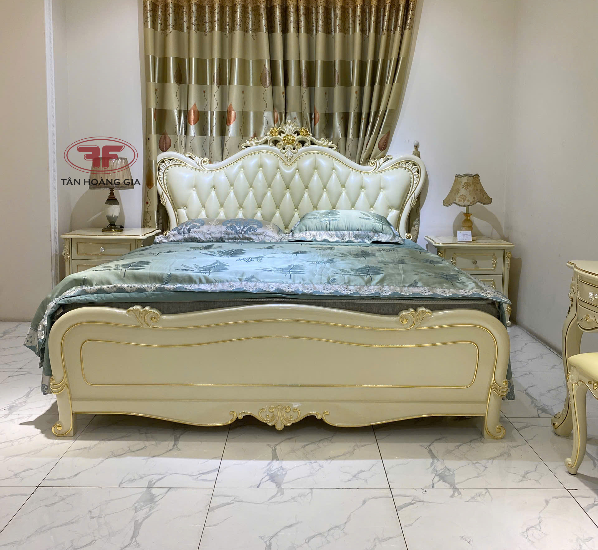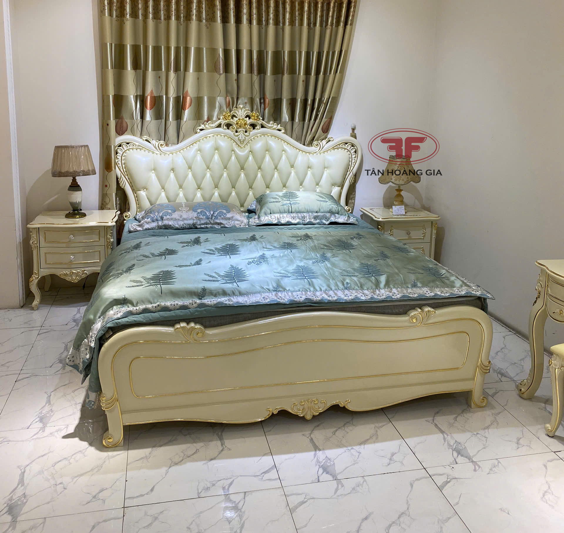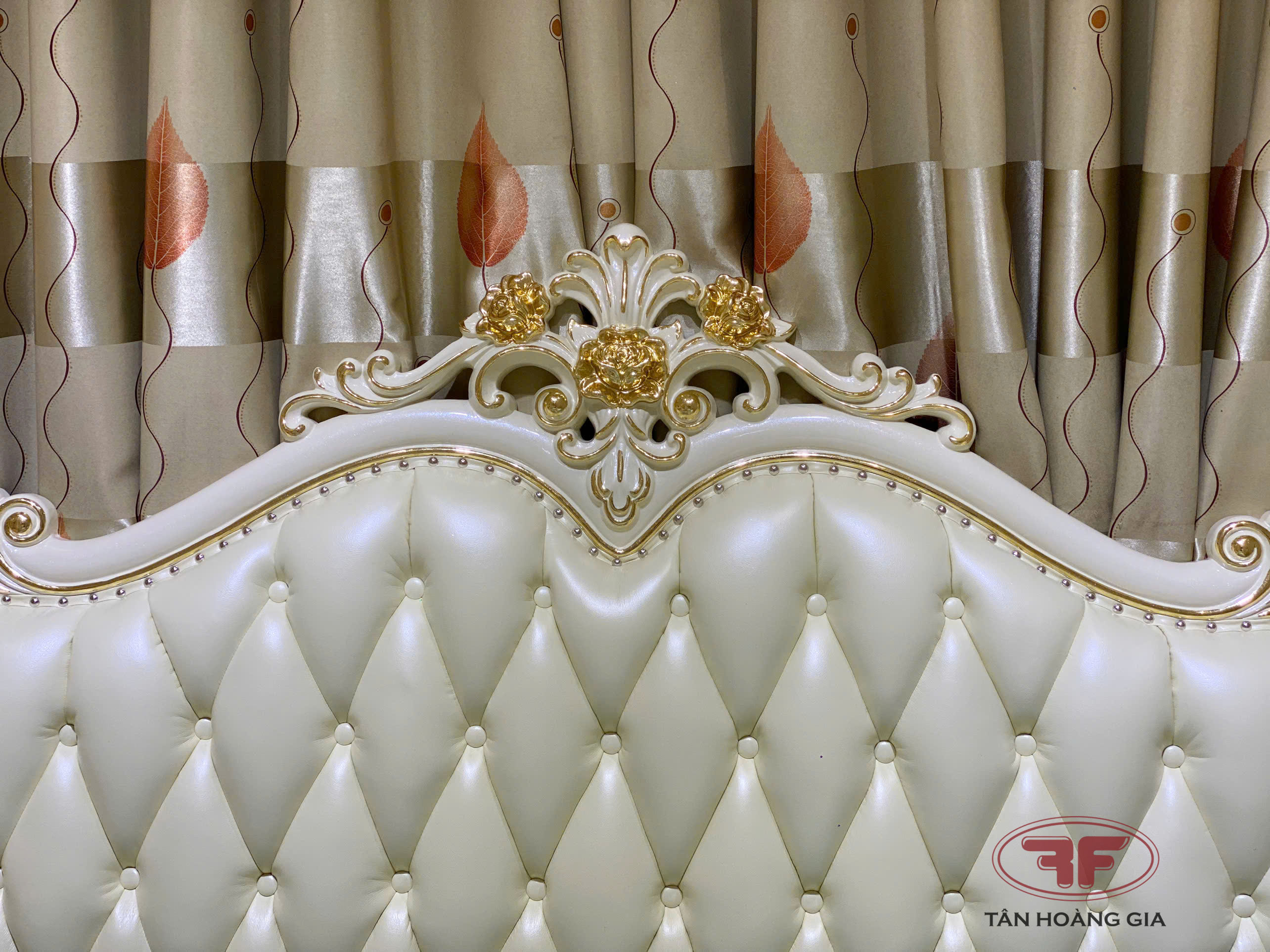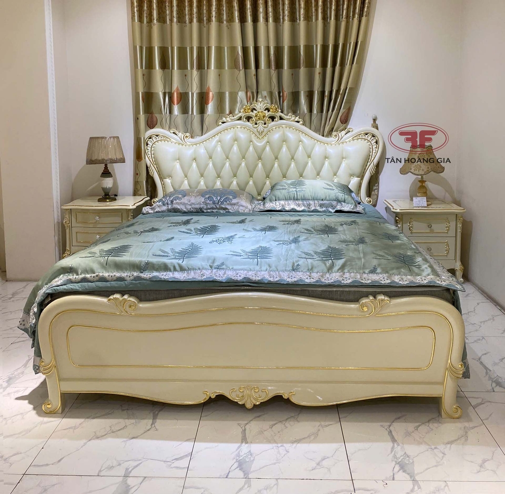 Nếu khách hàng đang có ý tưởng hoàn thiện cho phòng ngủ cưới theo phong cách tân cổ điển Châu Âu thì đừng bỏ lỡ mẫu giường ngủ dát vàng tân cổ điển 881B-DV mới được Nội Thất Tân Hoàng Gia đưa về showroom ra mắt gần đây . Được thiết kế đầu giường bo cong với các chi tiết hoa văn tinh tế sắc sảo quyến rũ , đầu giường được bọc da rút múi vừa tạo điểm nhấn mang tính thẩm mỹ vừa có thể tận dụng tựa lưng thư giãn êm ái . Đuôi giường được thiết kế đuôi gỗ nguyên bản không bọc da cùng với 1 số chi tiết hoa văn tạo điểm nhấn , dễ dàng vệ sinh trong thời gian sử dụng .