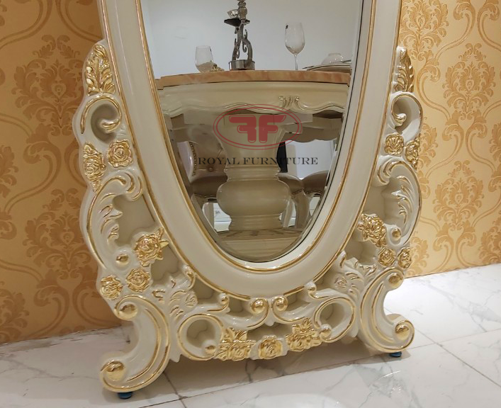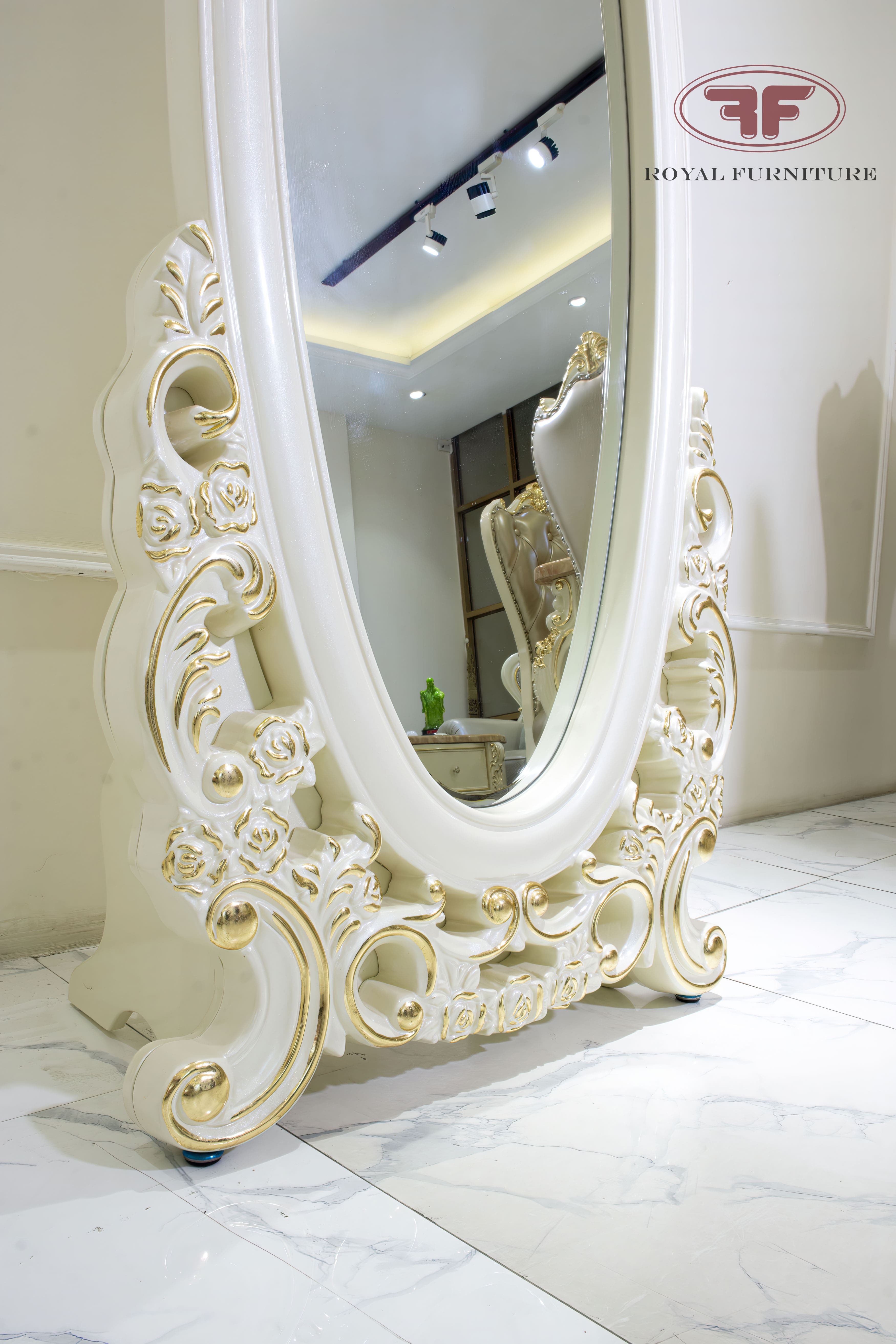 Giống như bàn trang điểm, gương cây tân cổ điển là một món đồ nội thất không thể thiếu trong không gian phòng ngủ tân cổ điển của phái đẹp, giúp chị em phụ nữ thêm chỉn chu, tự tin hơn khi bước ra ngoài. Hiểu được sự cần thiết đó, Nội thất Tân Hoàng Gia giới thiệu mẫu gương cây tân cổ điển dát vàng 939B với thiết kế cầu kỳ, duyên dáng và mang đủ sự sang trọng, đẳng cấp cho chủ sở hữu.