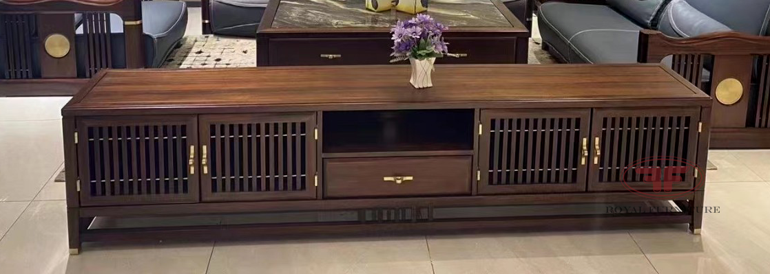 Mẫu kệ tivi dài 2m4 phong cách Indochine Gỗ óc chó 6018 thiết kế với chân cao tạo sự thông thoáng và cũng tạo thêm được các chi tiết thiết kế để mẫu kệ tivi này không bị nhàm chán.