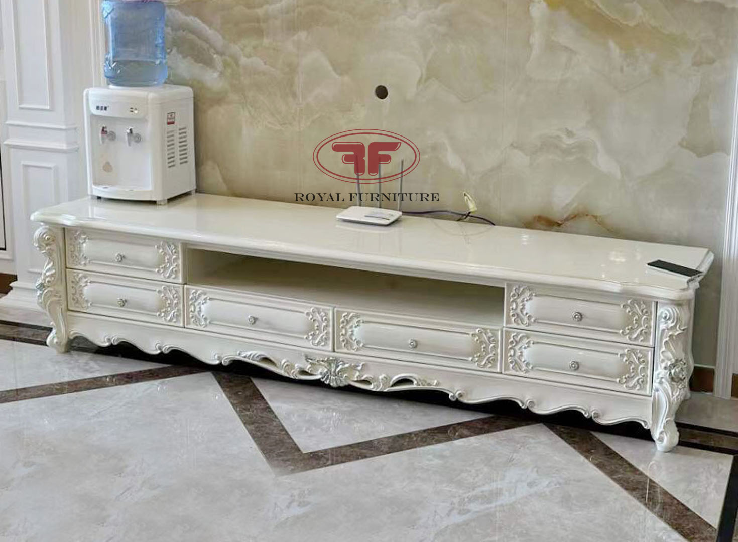 Kệ tivi nhập khẩu tân cổ điển SAINA WHITE