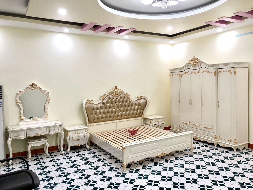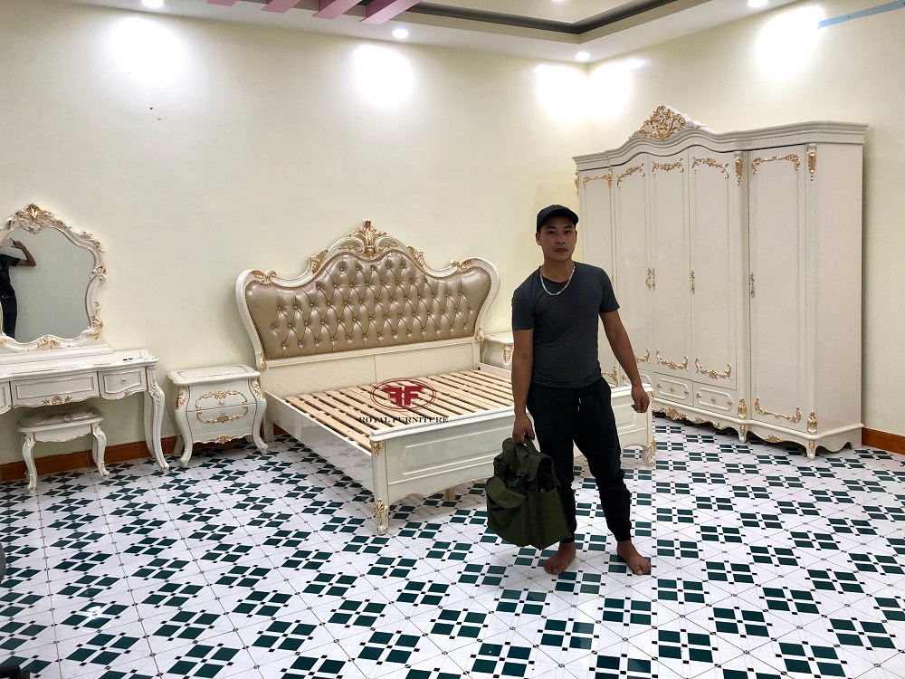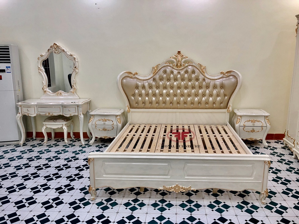 – Giường ngủ dát vàng 915B: Kích thước đặt đệm: 1m8x2m (Kích thước phủ bì: 2150*2190*1700mm)