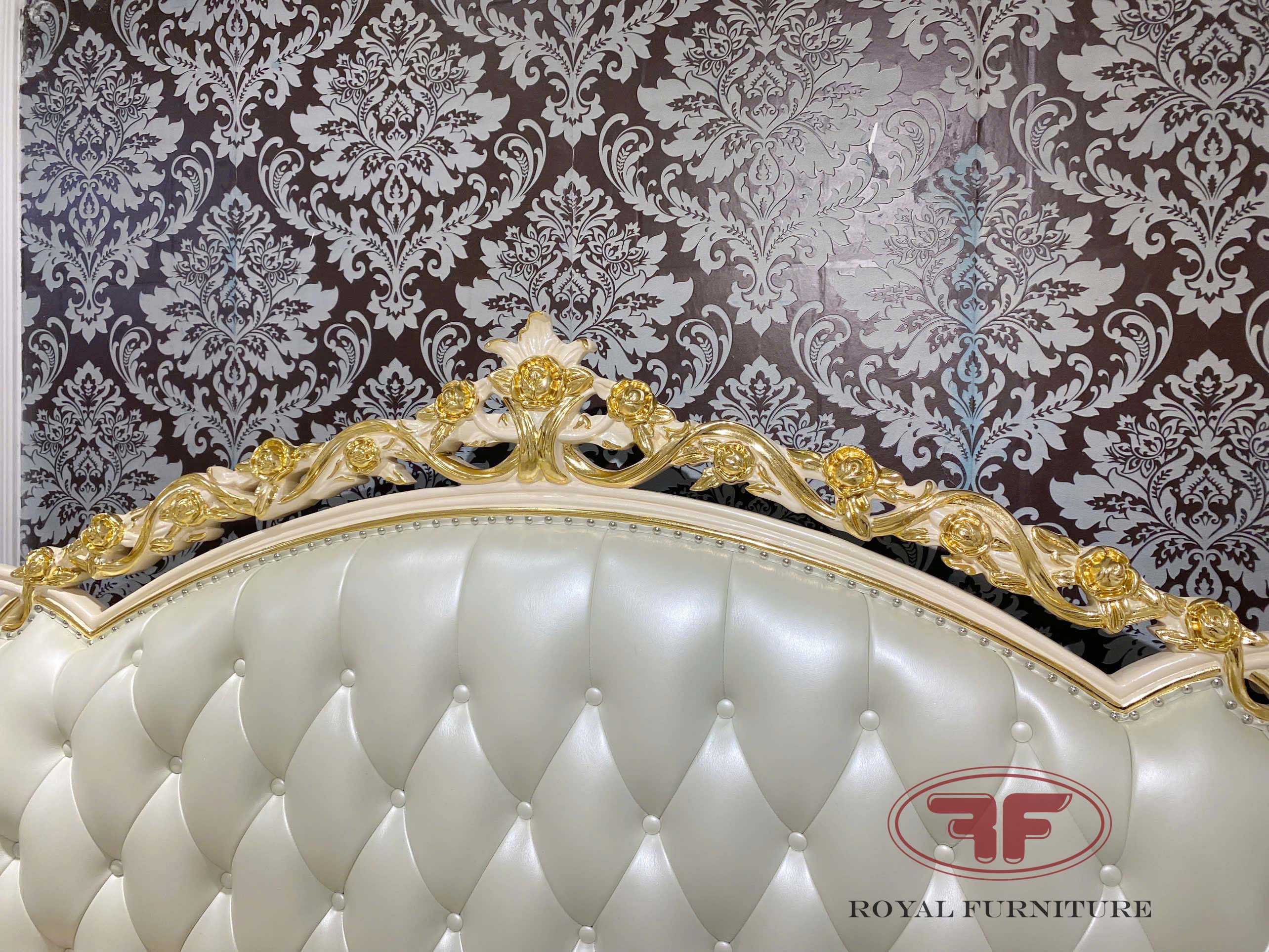 Chất liệu: Khung gỗ sồi oak , bọc da cao cấp , họa tiết dát vàng