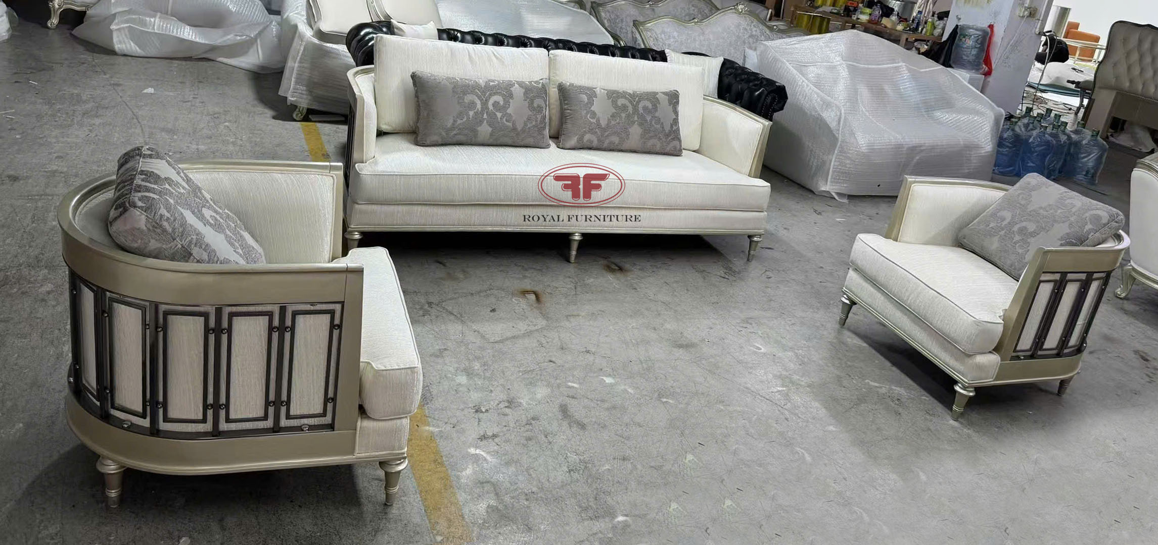 Ảnh chụp thực tế mẫu sofa phòng khách gỗ luxury nhập khẩu bọc nỉ 8821