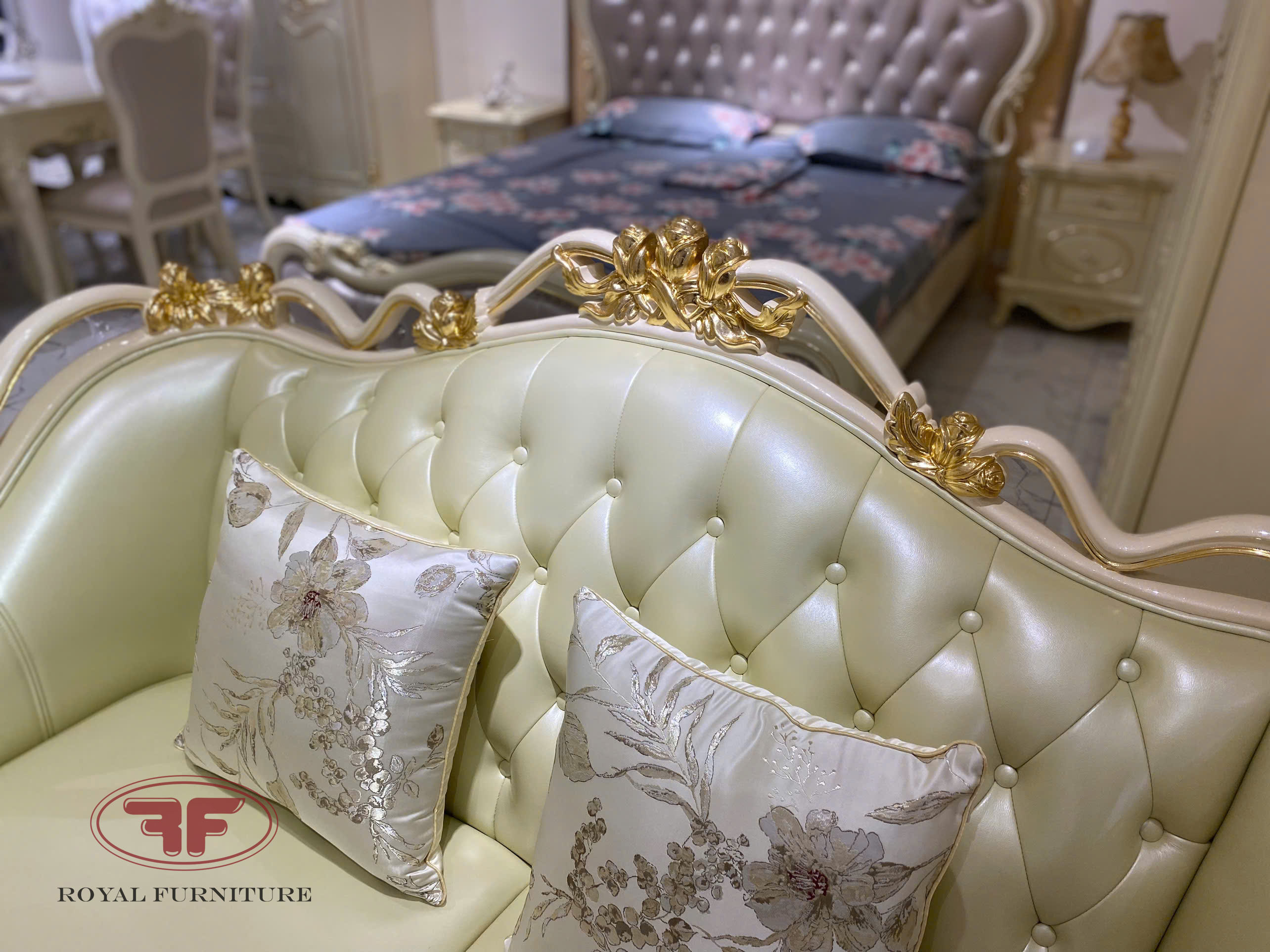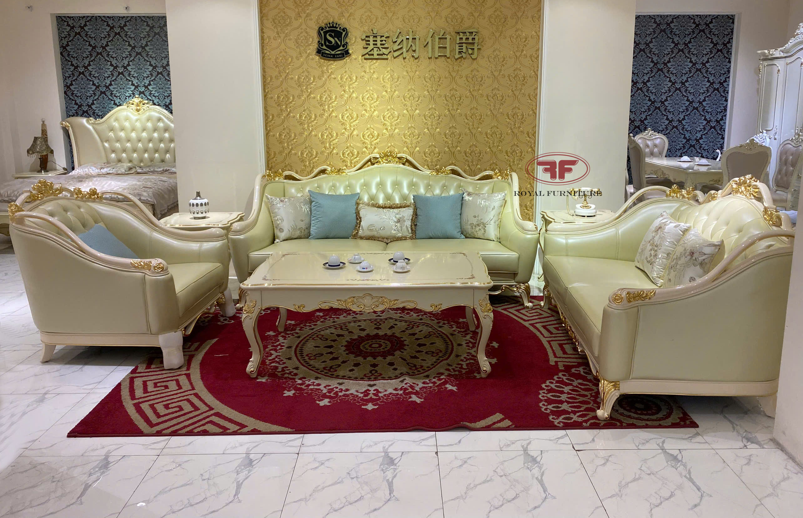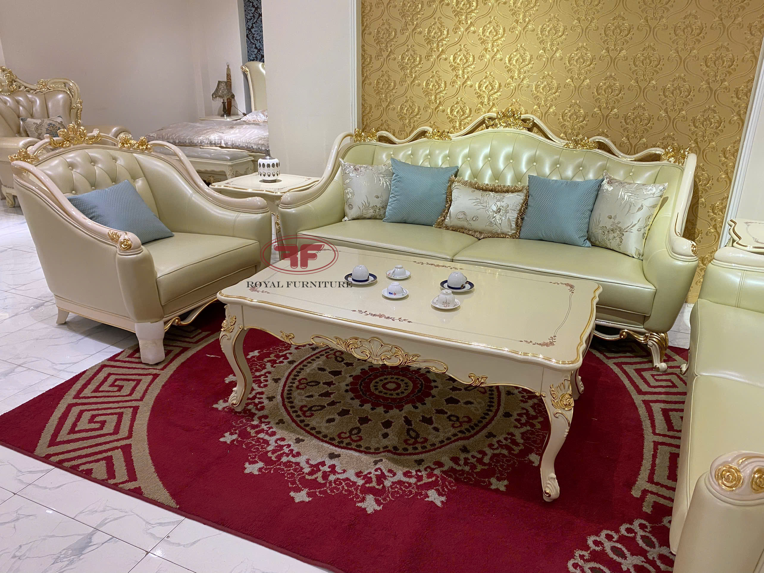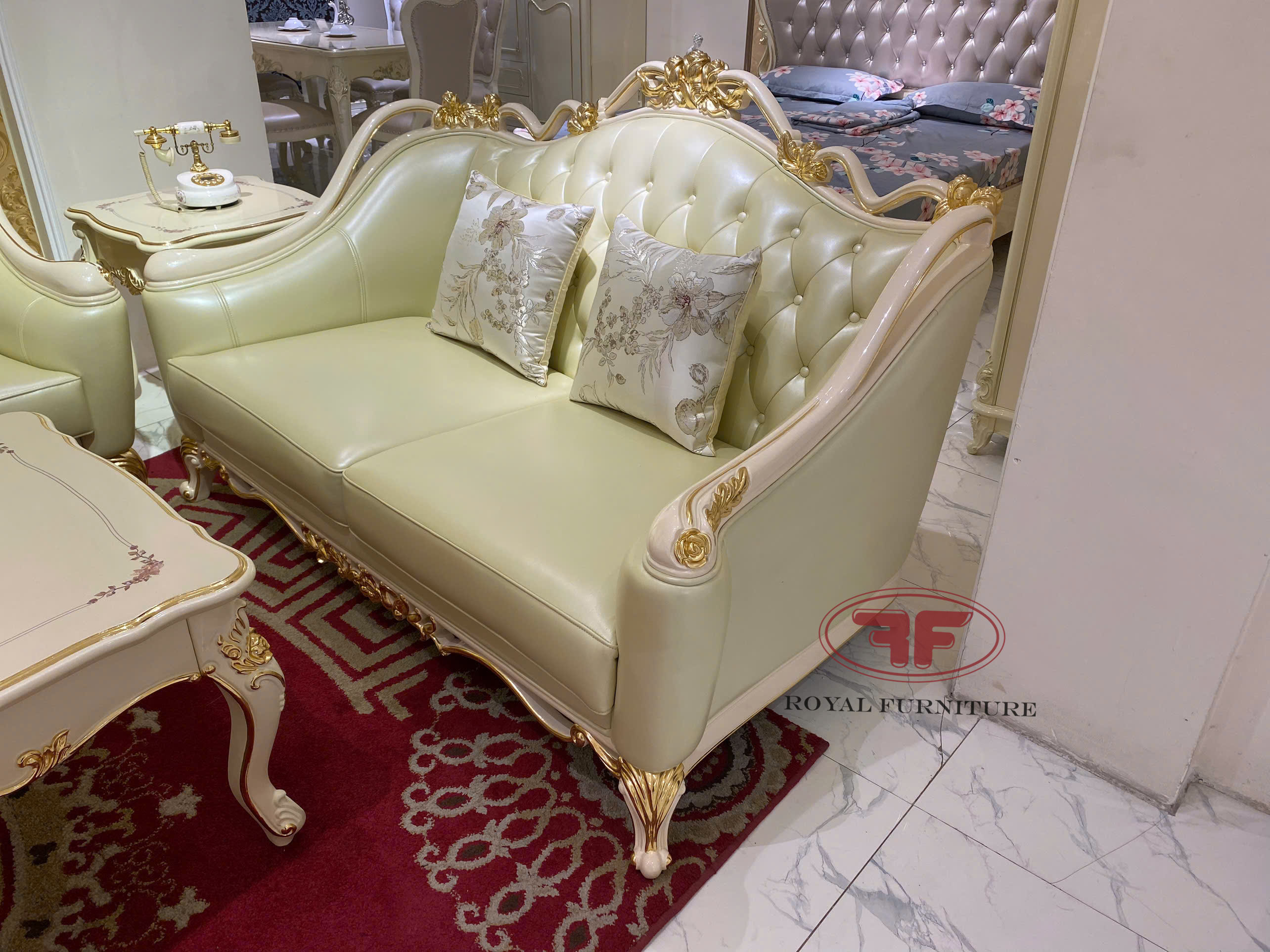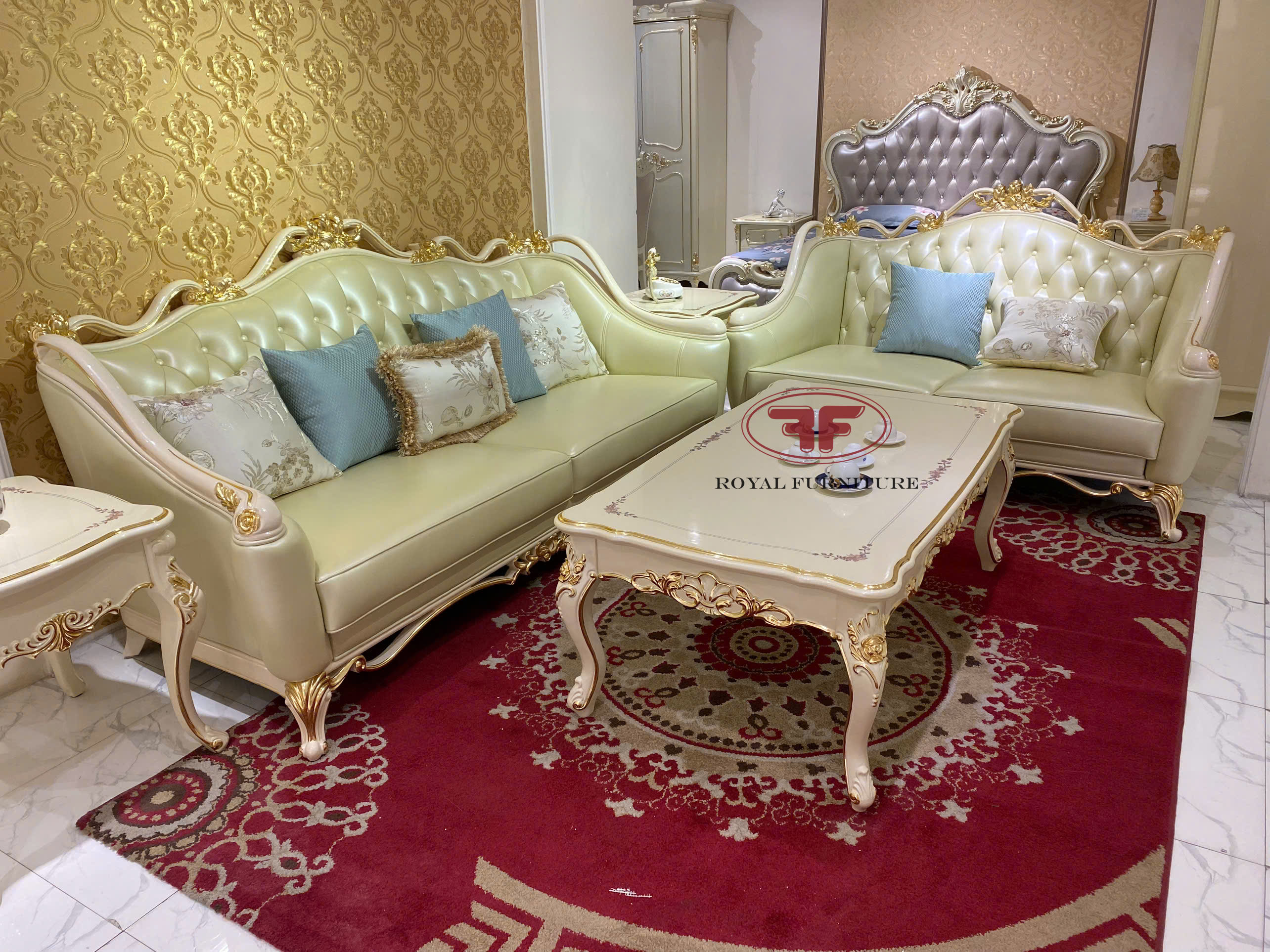 Sofa tân cổ điển dát vàng đep sang trọng 8832 kê tại showroom