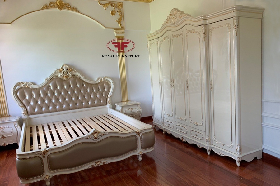 – Giường ngủ dát vàng 913B: Kích thước phủ bì: 2210*2180*1670mm (KT đặt đệm: 1m8x2m)