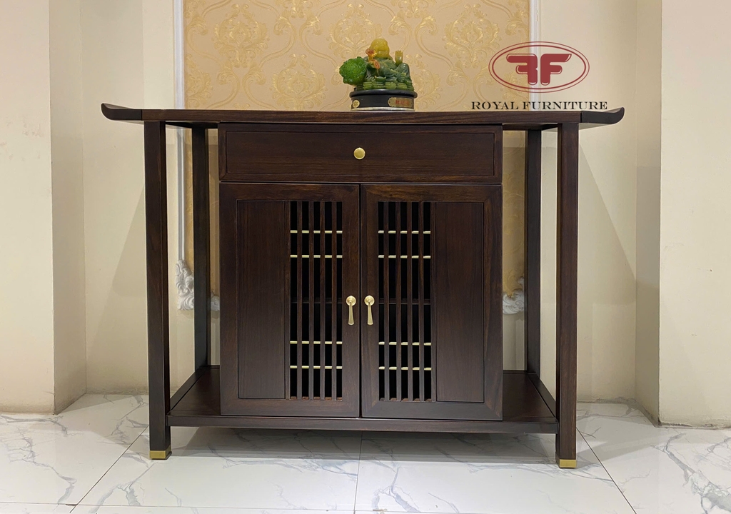 Mẫu tủ console Indochine gỗ óc chó nhập khẩu HT2506 thiết kế có 2 cánh phía dưới gồm 2 ngăn kéo để đồ tiện ích.