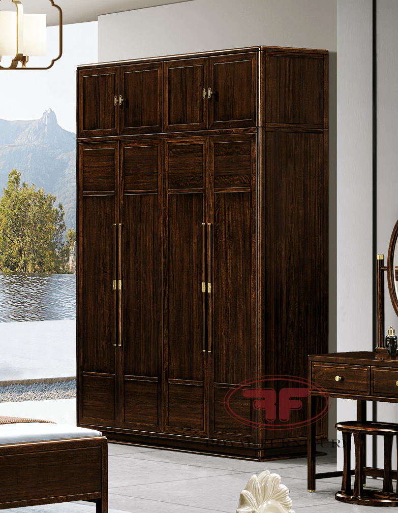 Tủ quần áo Indochine Gỗ óc chó 4 cánh 1m75 2351 có thiết kế hình khối vuông vắn, vững chắc, mang đậm phong cách nội thất Indochine truyền thống. Tủ có 4 cánh cửa mở với nhiều ngăn tủ, vừa tăng diện tích lưu trữ đồ, vừa tạo nên vẻ đẹp cân đối và hài hòa. Các cánh cửa được trang trí bằng các đường chỉ chạy dọc và ngang, tạo điểm nhấn cho sản phẩm.