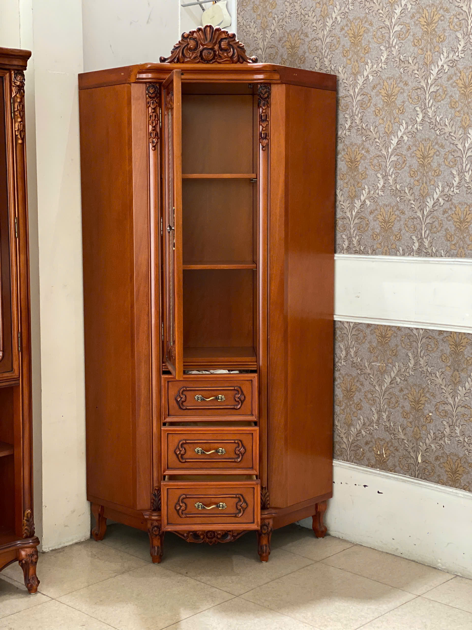 Tủ góc trang trí tân cổ điển gỗ nhập khẩu 618